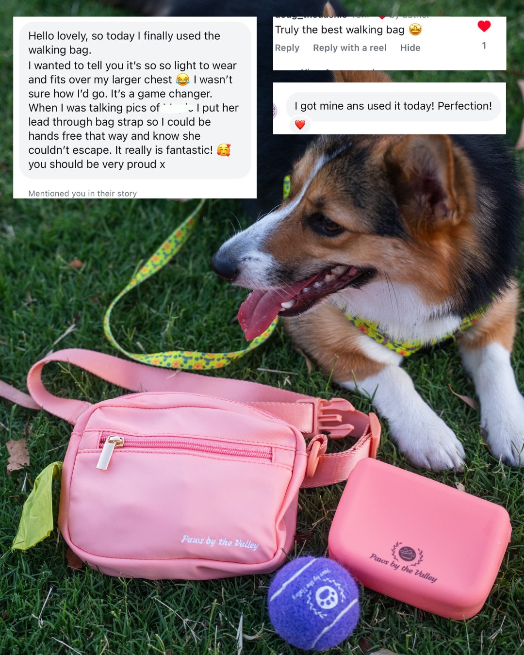 Our everyday dog walking bag it's the perfect size to carry all your essentials.