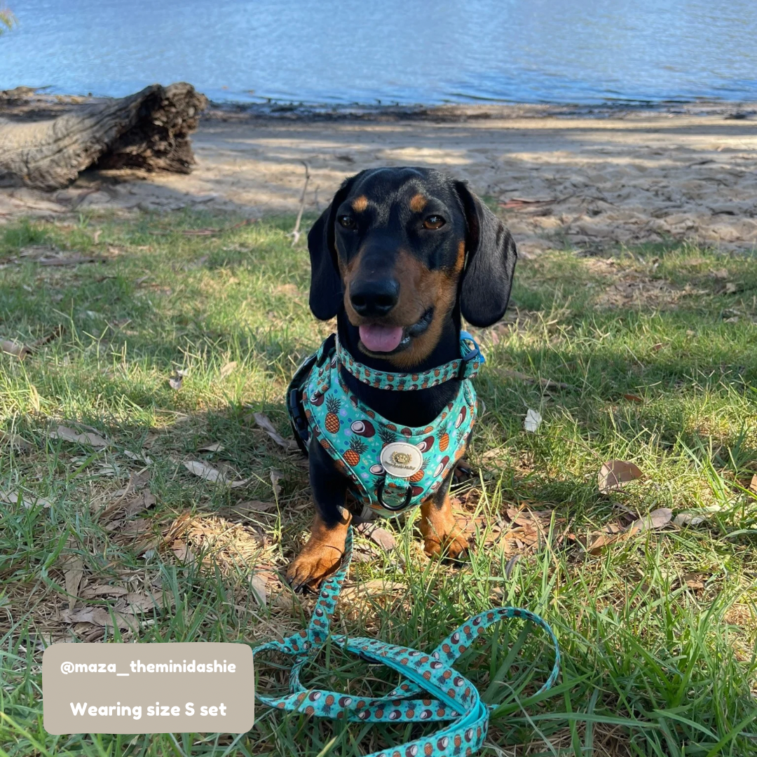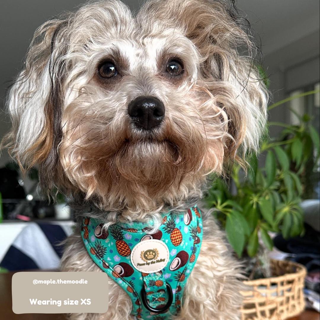 This Pina Colada harness is absolutely adorable! The colours look unreal on Gigi and the sizing is accurate and easily adjustable 🤍🥰🩵