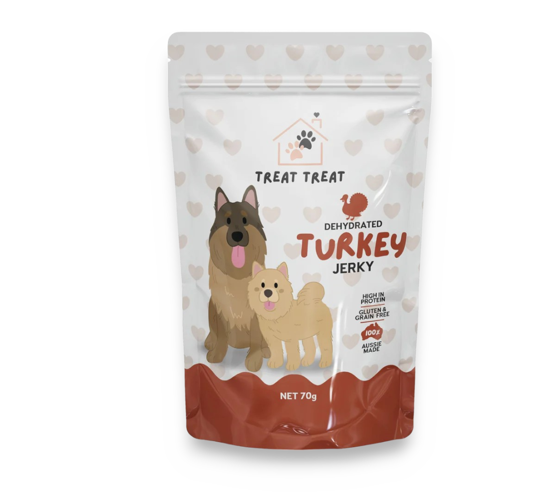 Spoil your furry companion with Treat Treat delicious Turkey Jerky. A perfect alternative if your pup is allergic to chicken. Made from premium, lean turkey meat, these snacks provide a nutritious and flavourful option for your fur friend.